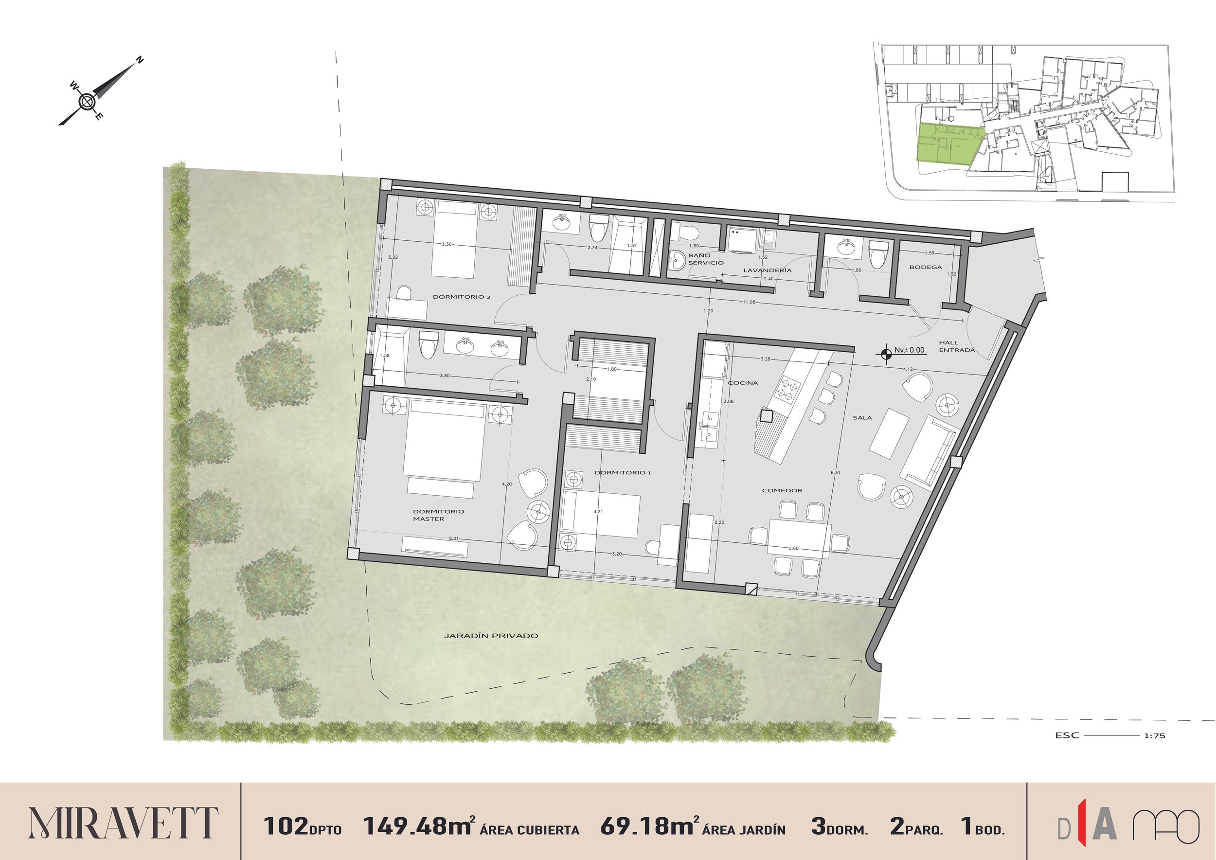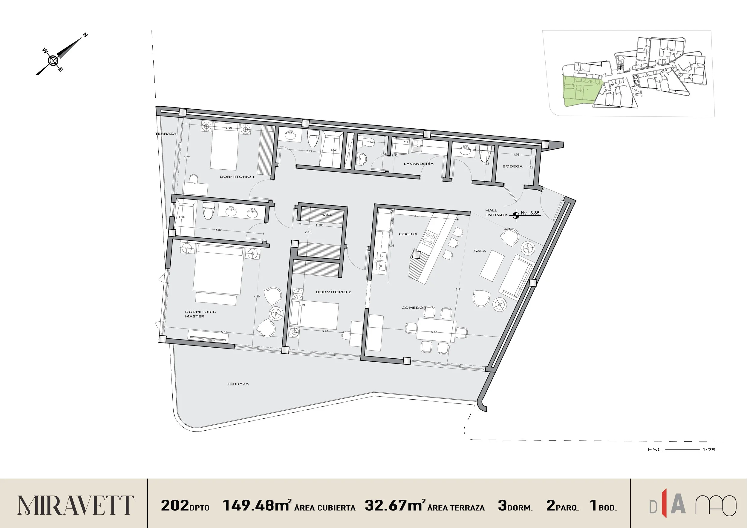 3 Dormitorios.